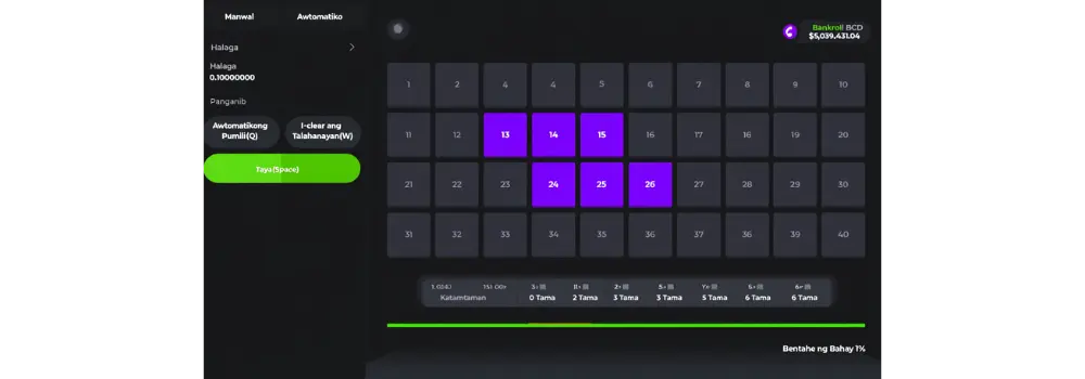 - Ang keno sa BC.Game ay nagbabayad patungkol sa bilang ng mga pinili at ang pagtutugma ng mga napiling numero sa mga iginuhit.